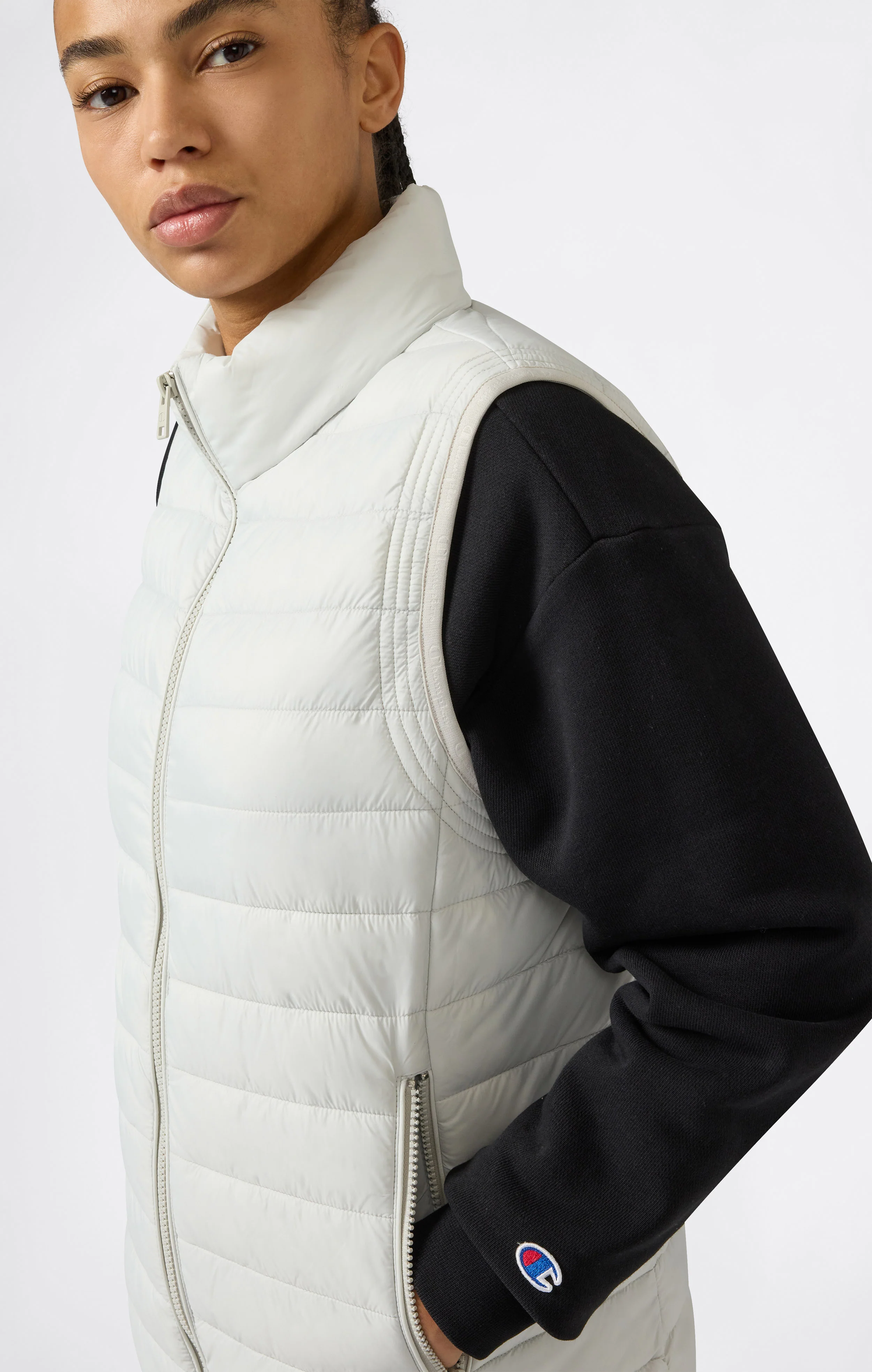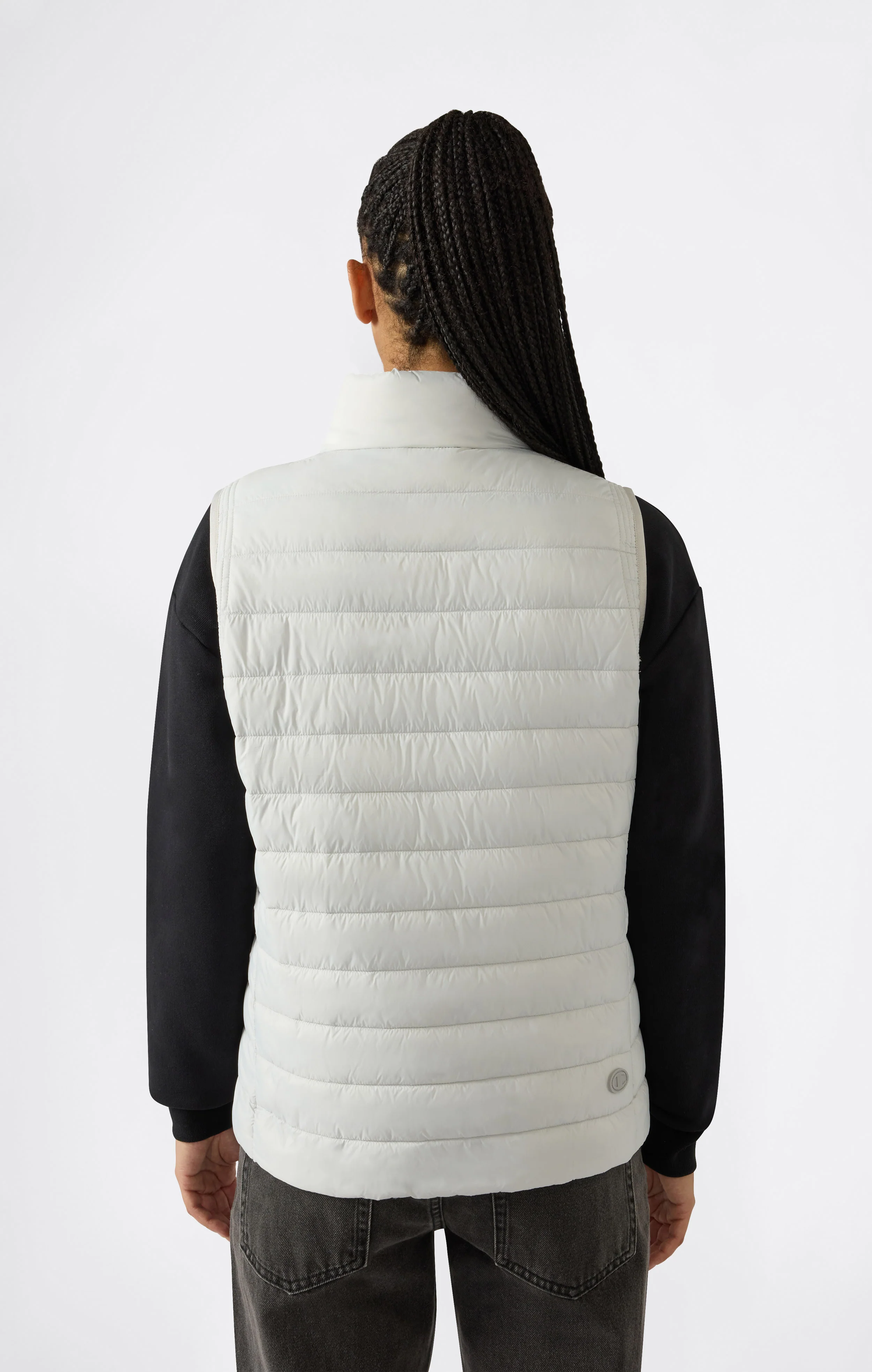 Women’s lightweight padded vest designed for comfort and protection during transitional seasons. Made from lightweight nylon with a water-resistant treatment and CIRE finish, it offers reliable protection from the elements while remaining extremely light. The thin padding provides thermal insulation without bulk, while the Custom Fit enhances the feminine silhouette. A versatile piece, perfect worn on its own or as a mid-layer for everyday urban wear.@@@Custom Fit, slim and feminine fit |Lightweight padded vest |Full zip front closure |Front zip pockets |Lightweight nylon fabric with water-resistant treatment and CIRE finish |Light padding for thermal comfort |Fabric weight: 35 g/m² |Composition: 100% Polyamide